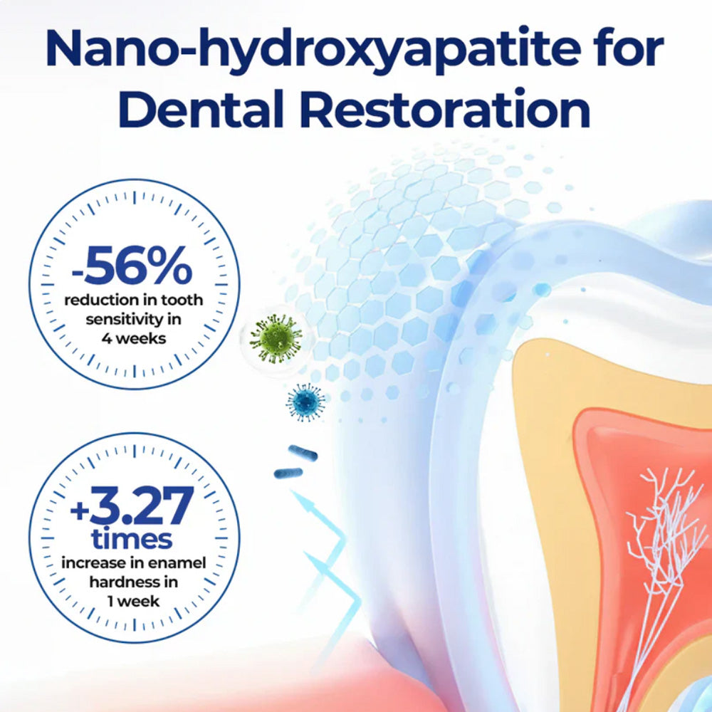 Coenzyme Q10: Recognized as a breakthrough in oral care, this highly effective antioxidant accelerates gum tissue regeneration and minimizes inflammation, promoting healthier gums and supporting overall dental health for a revitalized, refreshed smile.